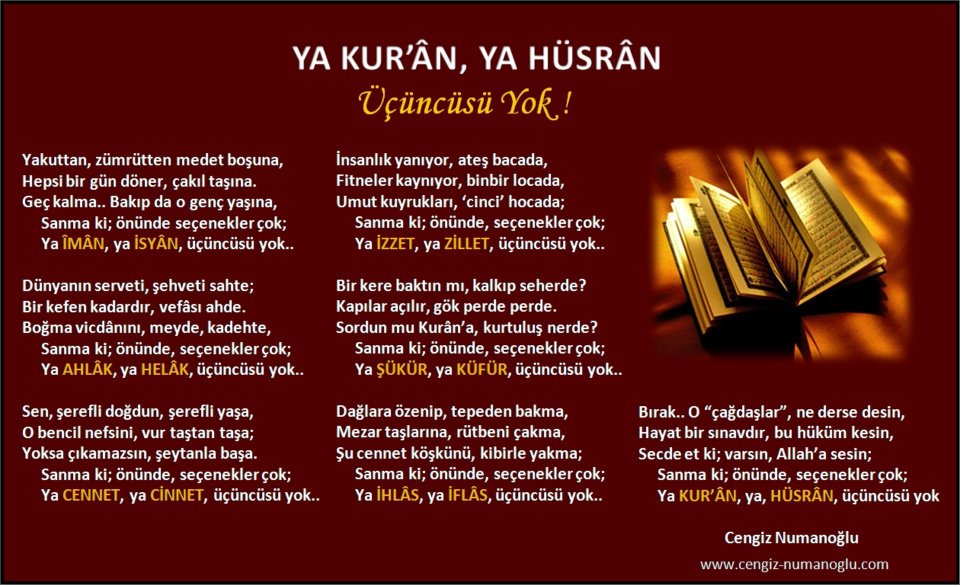 Ya Kur’ân, ya hüsrân, üçüncüsü yok !